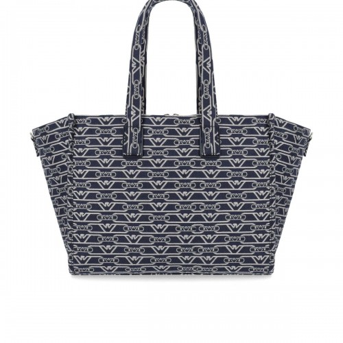 Emporio Armani Monogram Blue écru Medium Shopping Bag one size