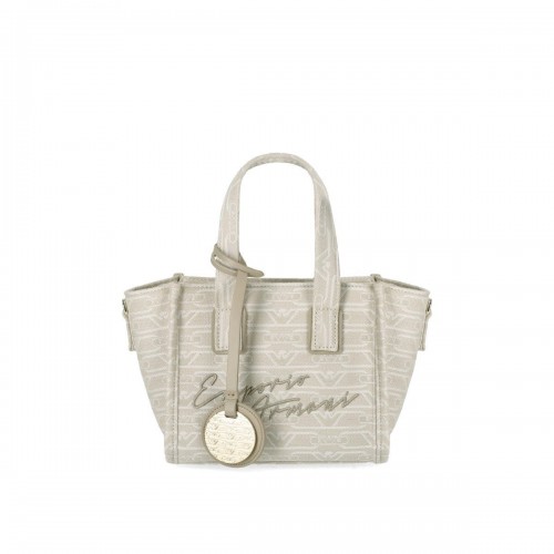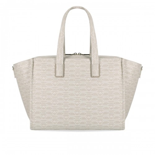 Emporio Armani shopping bag made of cotton canvas in shades of beige. Characterized by an all-over monogram jacquard design, it features double handles in a matching tone and a zip closure. Equipped with a coordinated tag embellished with a removable gold metal logo charm. Lined, it has an internal zip pocket and two flap pockets. Adorned on the front with EA logo embroidery. Shoulder strap finished with a removable and adjustable logo ribbon. Dimensions 51x27x17 cm.