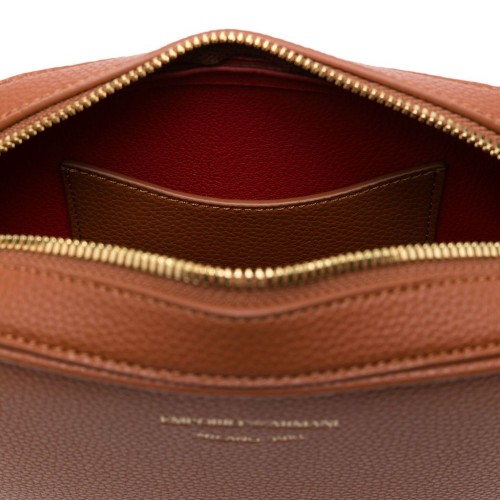 medium brown calf leather pebbled texture debossed logo to the front top zip fastening adjustable detachable logo shoulder strap main compartment internal card slot debossed internal logo leather lining This piece comes complete with a protective dust bag.