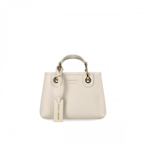 MyEA mini shopping bag by Emporio Armani made of eco-leather in pearl gray tones. Characterized by a contrasting interior in tobacco brown, it features double handles with removable silver metal logoed carabiners. Equipped with a magnetic closure, it is adorned on the front with a silkscreened logo in silver color. Coordinated internal pouch and removable tag applied to the accessory’s handle with logo lettering. Shoulder strap decorated with adjustable and removable logoed ribbon. Dimensions 21x16x8 cm.