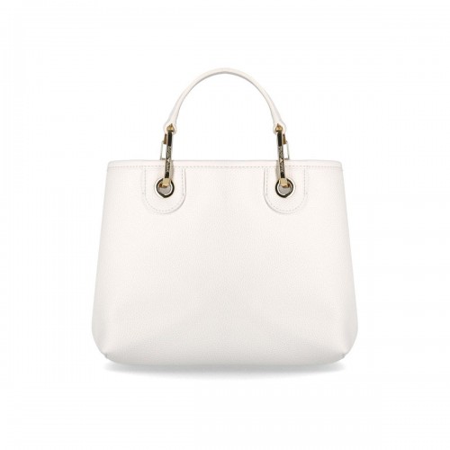 MyEA handbag by Emporio Armani made of white faux leather. Contrast interior, equipped with a removable pouch with zip. Details in golden metal, top handles and logoed fabric shoulder strap, adjustable and removable. Magnetic closure, measures 26x20x10 cm.