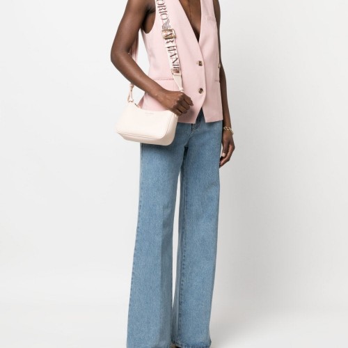 engraved-logo faux-leather shoulder bag from EMPORIO ARMANI featuring blush pink, calf leather, gold-tone hardware, gold-tone logo lettering, top zip fastening, single shoulder strap, internal slip pocket and main compartment.