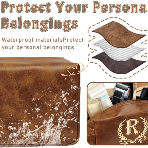 Engraved Travel Toiletry Bag Leather Waterproof Kit, Shaving Bag for Toiletries Accessories, Travel Wash Bag for Him – DarkBrown(R)
