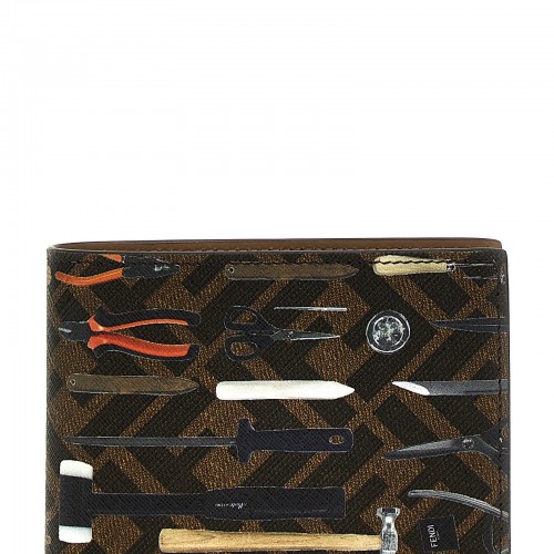 Paisley fabric and leather wallet with logo embroidery.