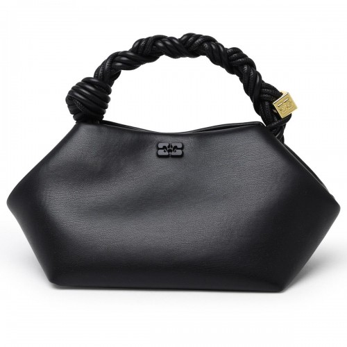 Made of fabric, enriched with leather inserts, leather top handle, adjustable and removable shoulder strap, leather drawstring closure, suede interior, metal feet on the bottom