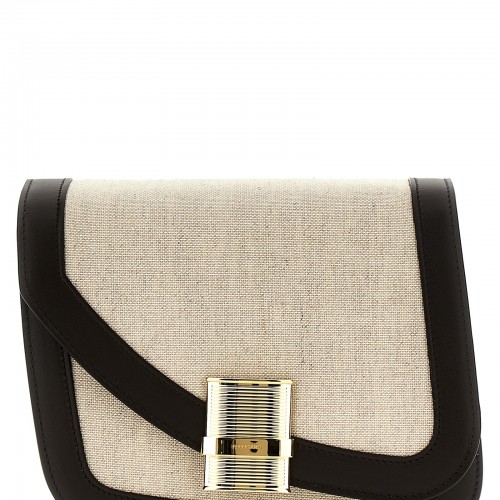 Vela’ small leather shoulder bag with metal closure with logo medal detail, removable and adjustable shoulder strap.