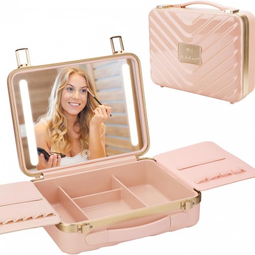 - 【3-COLOR LIGHTED MAKEUP CASE】Mirror 3-color light, stepless adjustment of brightness. Short press to adjust the color temperature, long press to adjust the brightness. Built-in rechargeable battery, which can last for two weeks on a single charge, comes with a Type-C charging cable.