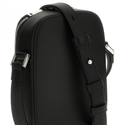 Compact leather shoulder strap with zip closure, adjustable model.