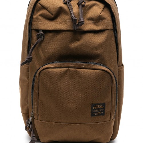 Filson “Journeyman” backpack, constructed of tightly woven waxed canvas, provides waterproofing through a rich kerosene impregnation. The 2-by-3 industrial twill, supplied by British Millerain, is chosen for its abrasion resistance. Padded and shaped waxed canvas shoulder straps, lined internally with cotton moleskin, ensure grip and breathability, while the hooks are vegetable-tanned bridle leather.