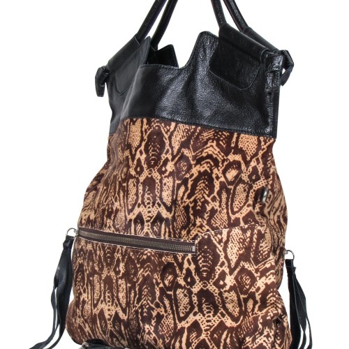 Foley & Corinna – Brown & Tan Snakeskin Print Calf Hair & Leather Hobo Bag