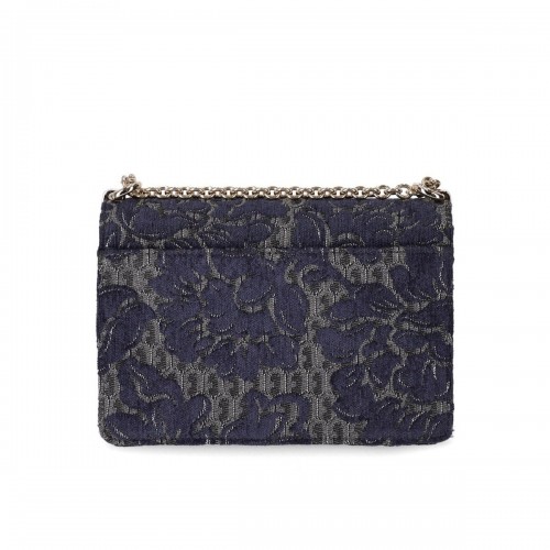 Furla 1927 Mini shoulder bag is made of fabric with a jacquard monogram pattern in shades of blue. It features details in golden metal, a swivel closure with logo, and a chain shoulder strap with leather shoulder pad. Interior with a pocket. Measures 20×12.5×8 cm.