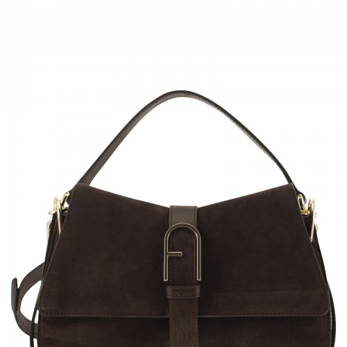 Versatile and compact: Furla Flow is a perfect ally for the winter season. Made of soft suede and cowhide leather, it is made distinctive by the decorative buckle with the iconic logo closing the front flap. The soft trapeze shape with rounded lines make it perfect for storing all your belongings. An accessory with multiple modes of use: as a top handle, as a crossbody or on the shoulder. – Open interior wall pocket – Short top handle in smooth leather – Long adjustable and removable shoulder strap in smooth leather – Flap closure with magnetic button closure DESIGNER ID: WB00996 BX3354 YU500