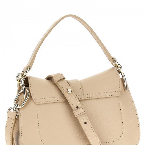 ‘Furla Flow Mini’ leather handbag, magnetic flap closure with metal buckle application, short handle, adjustable and removable shoulder strap, punched logo.