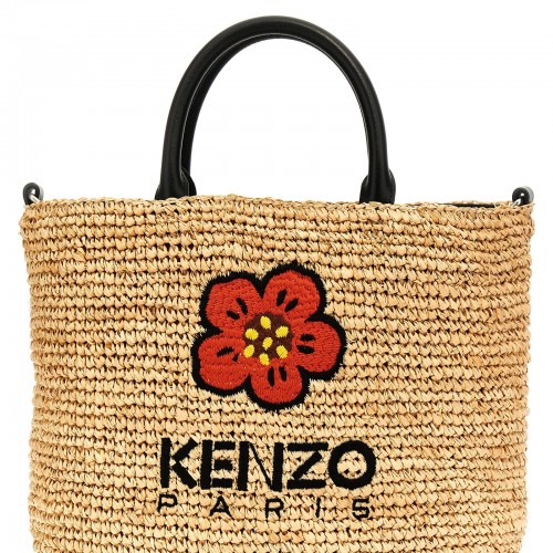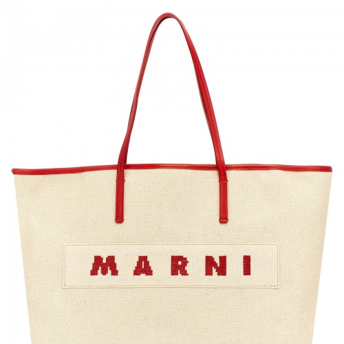 ‘Opportunity L’ leather shopping bag with embossed logo, double handle, zip closure.