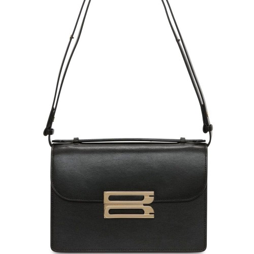 Flap closure with double magnet, maxi metal logo on the front, adjustable shoulder strap, woven lining, one inside zip pocket, embossed logo on the backn22.5 x 14 x 8.5 cm
