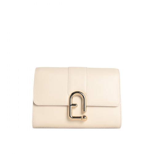 Flap closure with double magnet, maxi metal logo on the front, adjustable shoulder strap, woven lining, one inside zip pocket, embossed logo on the backn22.5 x 14 x 8.5 cm