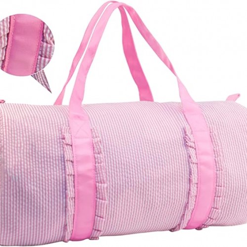 - This is our new upgrade quality smooth acrylic zipper soft seersucker kids toddler weekender duffel bag,Simple and classic! The duffle bag comes in blanks without pocket.