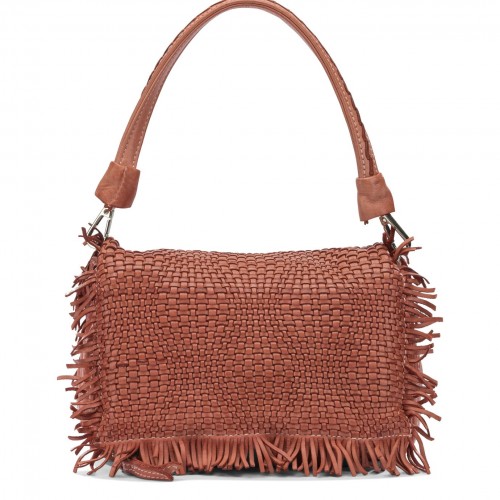 B-Kat shoulder bag in leather-effect fabric with curved silhouette, magnetic flap closure with metal ‘GANNI Butterfly’ logo on the front, and removable handle.