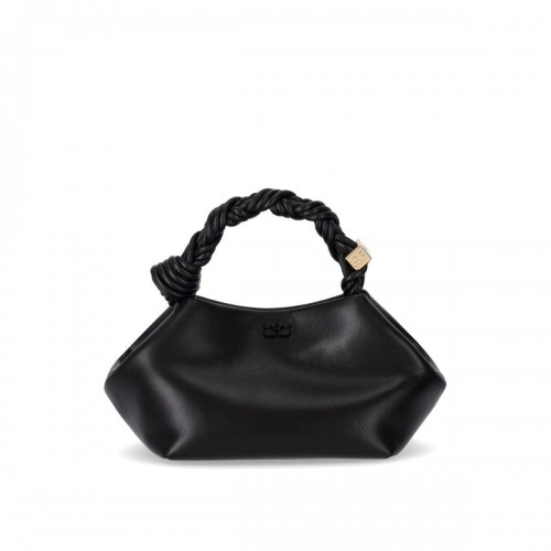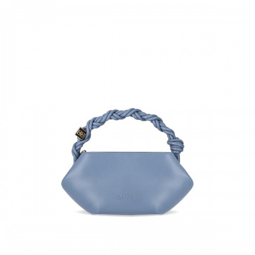 Ganni Bou bag made of recycled leather in shades of blue, enhanced by a braided effect handle with a golden metal detail. Lined interior, magnetic closure, and adjustable and removable shoulder strap. Dimensions 27.5×12.5×10.5 cm.