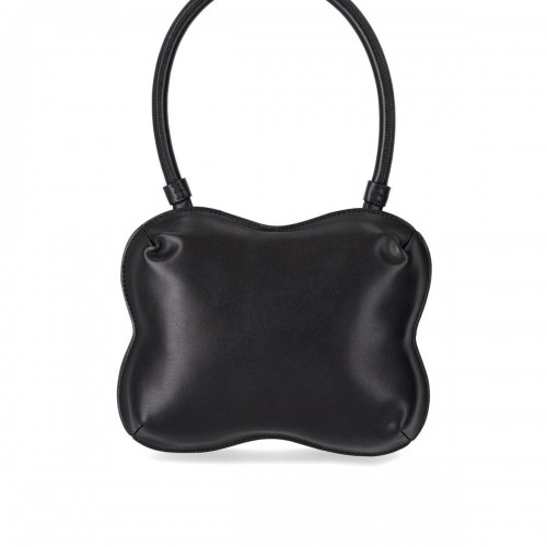 Butterfly bag by Ganni made in black recycled leather, with iconic logo embroidered on the front. Wide shoulder strap, details in golden metal and interior with leopard pattern, equipped with a flat pocket. Zip closure, measures 24x19x4.6 cm.