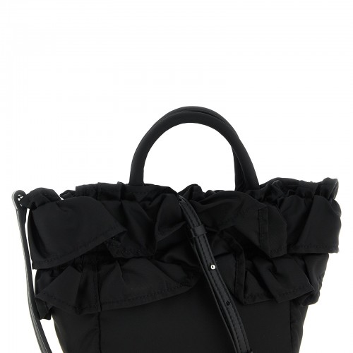 ‘Mini Shopper Ruffle’ handbag in technical fabric, double row of ruffles, tone-on-tone silicone logo patch on the front, magnetic closure, double fixed handle, adjustable and removable shoulder strap.