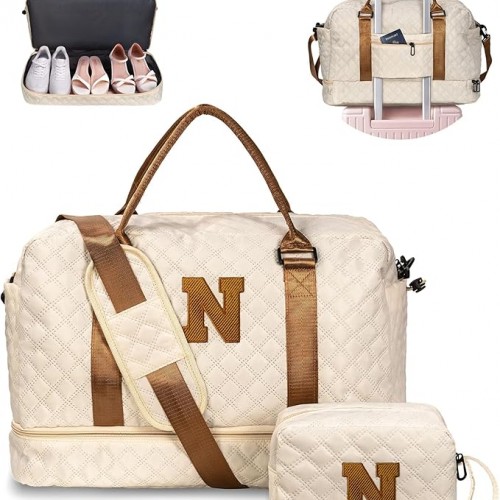 Gift for Girls – 5 6 7 8 9 10 11 12 13 14 15 16 Year Old-Duffle Bags with Shoe Compartment, Personalized Weekender Bag, Travel Bag with Makeup Bag, Gifts for Women Birthday Unique (Letter H)