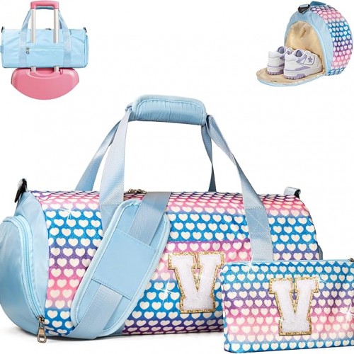 Gifts for Sporty Girl, Girls Travel Duffel Bag, Kids Initial Overnight Bags with Shoe Compartment, Customized Sport Gym Weekender Bag with Makeup Pouch, Birthday Gift for Sister (Letter C)