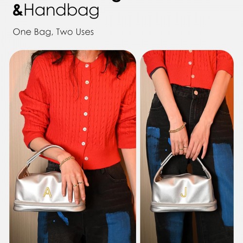 Gifts for Young Women, Personalized Makeup Bag with Handle, Initial Double Layer Cosmetic Bag with Makeup Brush Organizer, Cute Cosmetic Pouch for Women, Gifts for Friends Female Mom