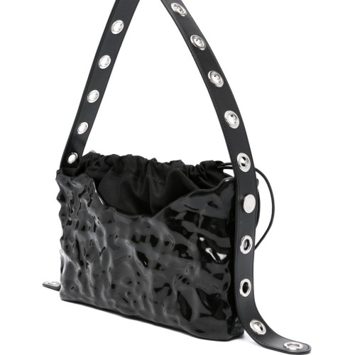 light beige/silver-tone rhinestone embellishment knot detailing concealed magnetic fastening two top handles satin lining internal logo patch internal patch pocket main compartment