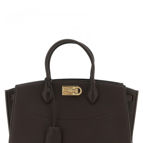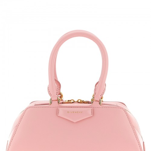 Leather handbag with jewel detail with rhinestones, handle, side zip closure.