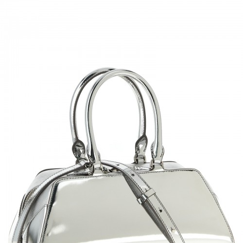 Small ‘Antigona East-West’ handbag in mirror-effect laminated calf leather and shiny full-grained leather, ‘Antigona Cube’ line, long East-West shape with origami style gusset structure, tone-on-tone patch with embossed logo, top zip closure, double fixed handle, rigid base, adjustable and removable shoulder strap.