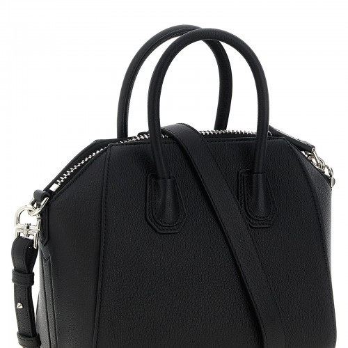 ‘Antigona’ mini full-grain calf leather handbag, pentagonal patch with front embossed logo, top zip closure, double fixed handle, adjustable and removable shoulder strap, front embossed logo.