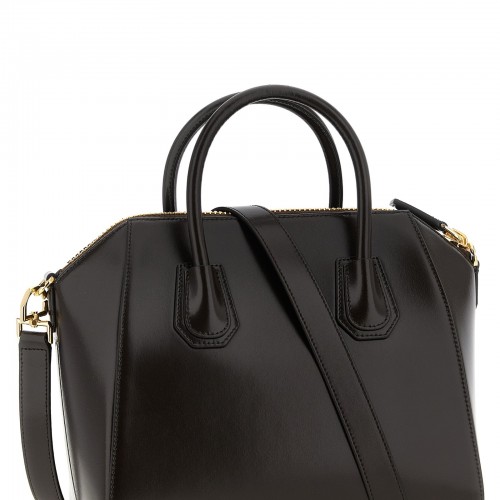Small ‘Antigona’ calf leather Box handbag, tone-on-tone patch with embossed logo, top zip closure, double fixed handle, adjustable and removable shoulder strap.