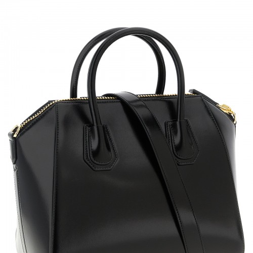 ‘Antigona’ small calf leather Box handbag with ‘Antigona’ line, tone-on-tone patch with embossed logo, top zip closure, double fixed tubular handle, rigid base, adjustable and removable shoulder strap.