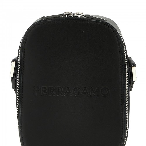 ‘Pandora’ small nylon crossbody bag with zip closure, metal logo detail, adjustable shoulder strap.