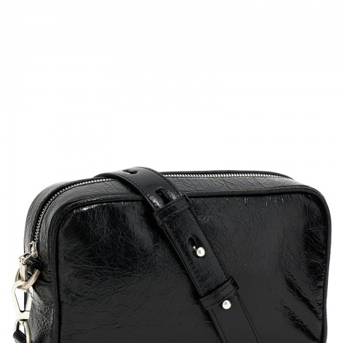 Star Bag crossbody bag in wrinkled-effect leather with tone-on-tone logo patch, removable leather strap, and zipper closure.