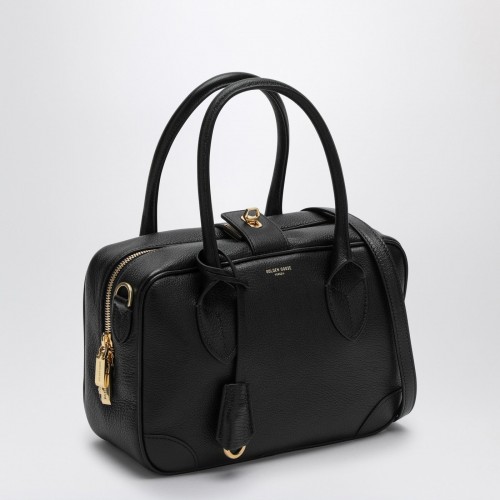 Small handbag by Golden Goose made of black embossed leather, featuring two handles, a strap with a swivel fastening, a top zip fastening, an inside zip pocket, an inside slit pocket, a removable snap hook charm, a logo on the front and gold-tone metal hardware.