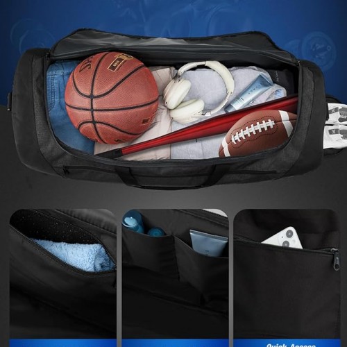 Gonex Gym Duffel Bag with Shoe Compartment Wet Pocket, Large Capacity Sports Duffle Bag for Men Women, Workout & Travel Bag with Multiple Pockets, Black, Large (100L)