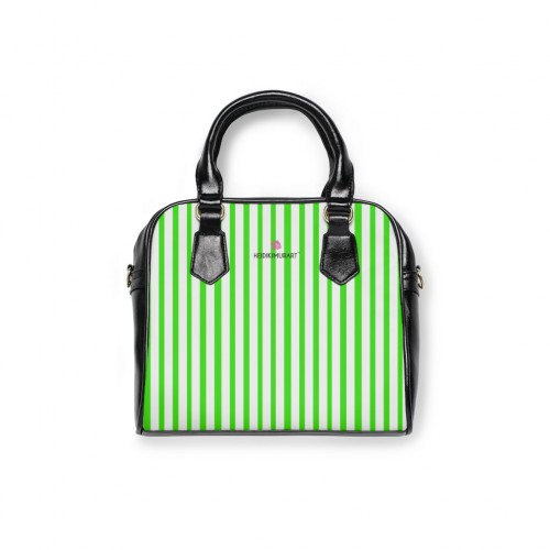 Green Striped Ladies’ Shoulder Handbag, White Green Stripes Printed Best Designer Ladies’ 9.45″ x 8.27″ Over The Shoulder High-Grade PU Leather Polyester Side Handbag With Removable And Adjustable PU Leather Shoulder Strap For Ladies, Best Designer Sling Bag, One Side Bag, Crossbody Bag, Side Bag For Women, Side Bags For College Girl or Women For Travel or School