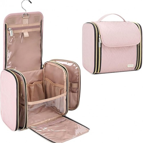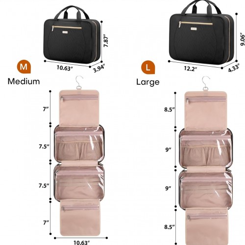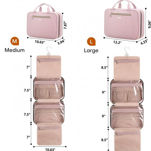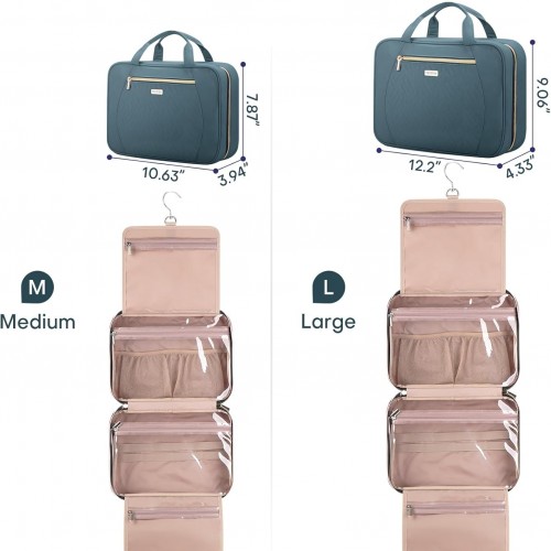 Hanging Toiletry Bag for Women Travel, 2 Sizes Large & Small Waterproof Cosmetic Organizer with 4 Compartments, Rotating Hook, Foldable Pink Travel Bag for Toiletries & Makeup Medium Grey Blue