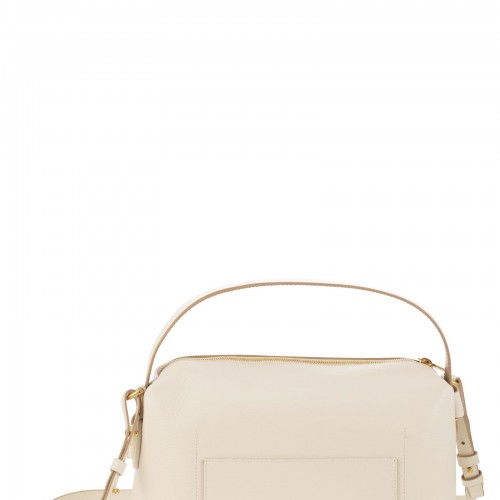 Cool and feminine, the Hogan H-Bag collection represents a contemporary synthesis of functionality and elegance. Featuring a plexiglass H accessory on one side, this camera bag is crafted in grained leather. Zippered, it has a fixed flat handle and an adjustable, removable shoulder strap for versatile use. – Hogan logo side accessory – Back pocket – Zip closure – Inside pocket DESIGNER ID: KBW01MR0200R8T7C07