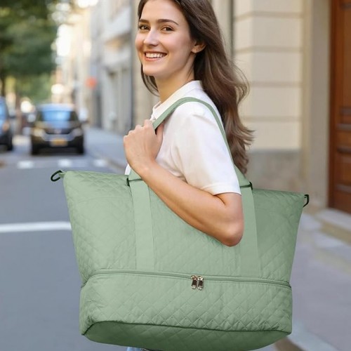 HOTOR Travel Duffel Bag – Weekender Bags for Women, Carry On Overnight Bag with Shoe Compartment, with Toiletry Bag for Travel Essentials and Travel Accessories, Pink, 13.4″×17.3″×7.9″