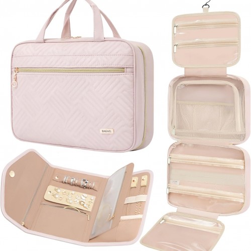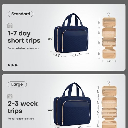 HOTOR Travel Toiletry Bag for Women & Men, Waterproof Makeup Bag with Hanging Hook and Multiple Pockets, Cosmetic Bags for Women, Travel Essentials, 11.2” x 3.2” x 8.9”, Dark Blue