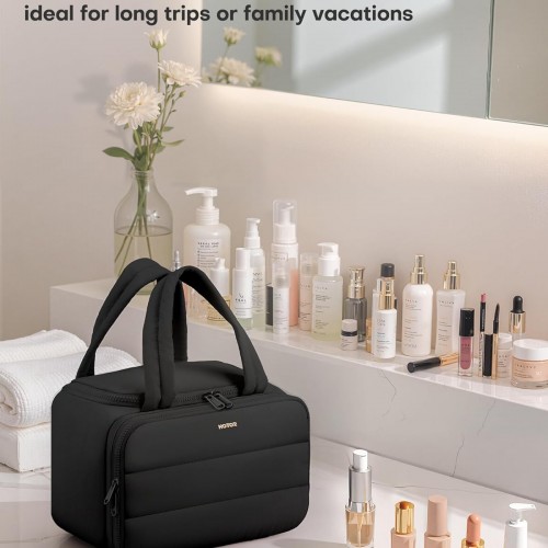 HOTOR Travel Toiletry Bag – Wide-Open Toiletry Bag for Women, Multi-Pocket Makeup Bag for Travel Essentials, Wet & Dry Separation Travel Accessories for Trip, Gym, 11.4″ x 5.9″ x 8.3″, Black