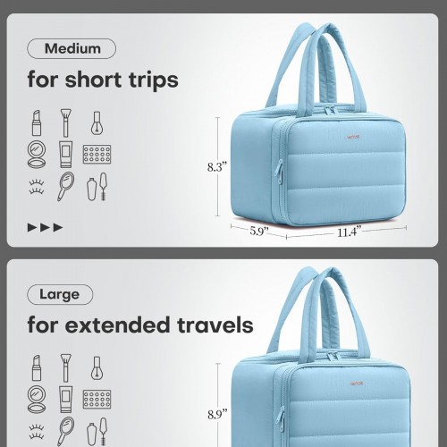 HOTOR Travel Toiletry Bag – Wide-Open Toiletry Bag for Women, Multi-Pocket Makeup Bag for Travel Essentials, Wet & Dry Separation Travel Accessories for Trip, Gym, 11.4″ x 5.9″ x 8.3″, Blue