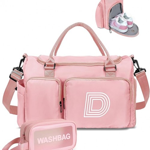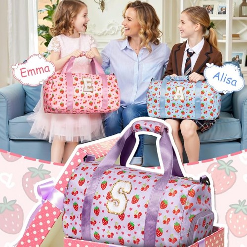 Initial Duffel Bag for Kids, Cute Dance Bag with Shoe Compartment, Girly Gifts for 6 7 8 9 10 11 12 13 Year Old Girls, Wet Separation Waterproof Sports Overnight Travel Bag, Teen Girl Gifts