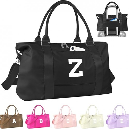 Initial Travel Duffel Bag Sports Gym Bag for Boys Teen Birthday Gifts,Black Personalized Weekender Bag Carry On Tote Bags for Men,Waterproof Overnight Luggage Bag Airplane Travel Essentials(Letter N)