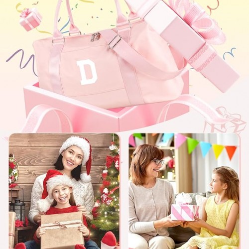 Initial Travel Duffel Bag Sports Gym Bag for Girls Teen Birthday Gifts,Pink Personalized Weekender Bag Carry On Tote Bags for Women Men,Waterproof Overnight Luggage Bag with Trolley Sleeve(Letter D)