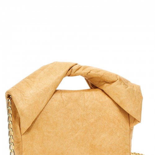Twister Midi’ leather and paper-effect fabric handbag with handle detail, removable chain shoulder strap, flap closure, front embossed logo.