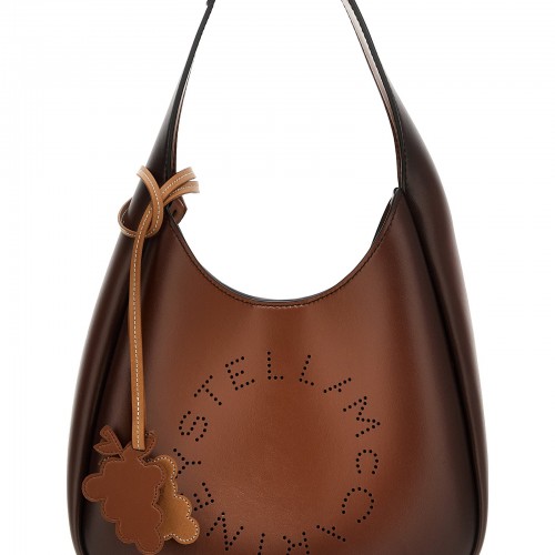Le Bambino Long leather shoulder bag with magnetic flap closure, front metal logo appliqué, and fixed top handle.